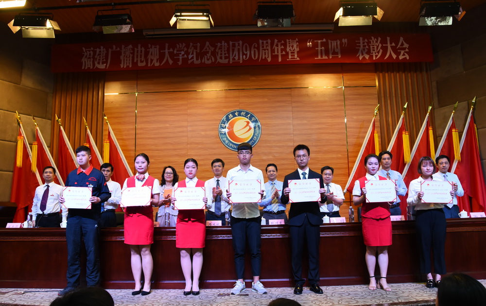 会议在庄严热烈的气氛中进行。团委书记应木荣宣读校团委和职业学院团委表彰决定。陈兴炎、马成斌及有关部门负责人分别为受到校团委和职业学院团委表彰的青年集体和师生颁发了荣誉证书。教务处学分银行办公室被授予校五四红旗集体荣誉称号,职业学院高职2016级物流管理1班团支部等7个集体被授予校“五四”红旗团支部称号,欧阳佳男等28名师生被授予校优秀团干部称号,林胜男等49名师生被授予校优秀团员称号。高职2016级城市轨道交通运营管理1班等6个集体被授予职业学院“五四”红旗团支部称号,李郅怡等38名学生被授予职业学院优秀团干部称号,上官赛君等61名学生被授予职业学院优秀团员称号,江宇等8名同学被授予职业学院优秀青年志愿者称号。