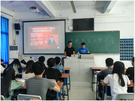 为了迎接党的十九大,唱响社会主义核心价值观的主旋律,10月25日中午职业学院青马社团在博厚楼102举办了马克思主义学习会,共有30名青马社成员参加。