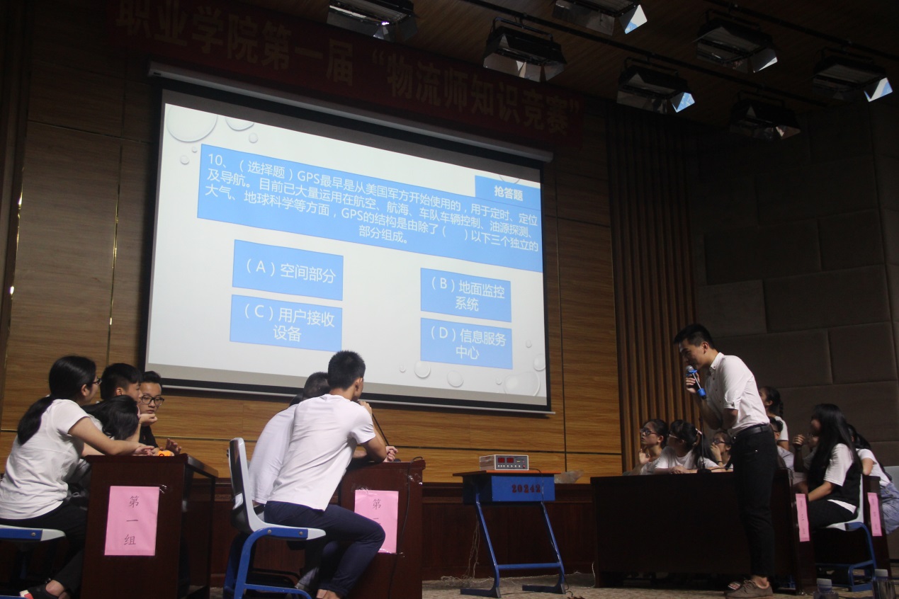 本次比赛以“弘扬物流精神,助考物流师资格证”为主题,以提升我院物流学子的专业基础为目的。竞赛内容包括物流职业道德、物流业务基础知识、物流英语、国际贸易、生产物流和物流信息系统等,以个人答题、小组抢答和风险题三个环节展开,共有四支参赛队伍进入决赛。最终经过激烈角逐,15级物流一班代表队获得本次竞赛的第一名,第二名为15级物流二班代表队,第三名是15级运营二班和物流三班的代表队,获得优秀奖的是15级物流三班代表队。此外,经过评委老师的打分还有现场观众的热情投票,最终15级物流一班的周杨瑞琪和15级物流二班的张欣娴同学获得本次竞赛的个人优秀奖,15级物流二班的吴泰辉同学成为本次竞赛的最佳人气奖获得者。