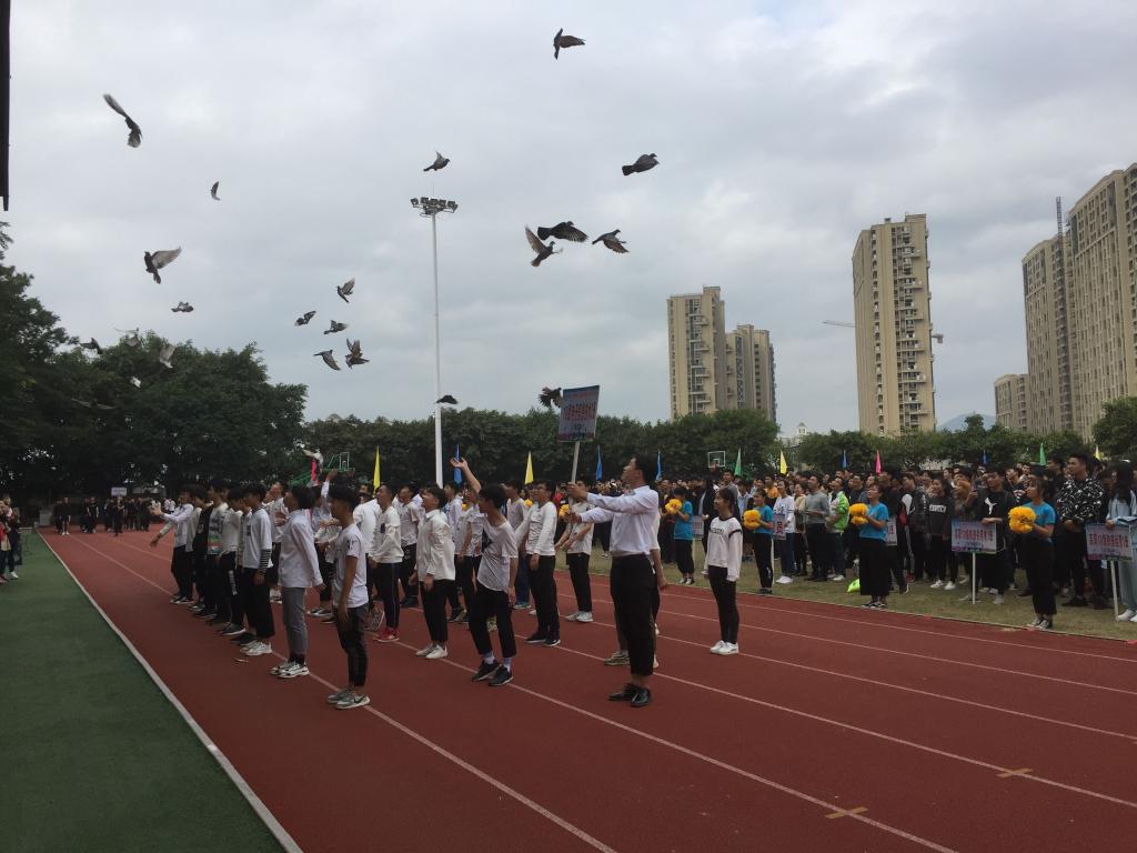 开幕式由职业学院副院长陈伟雄主持,院长池毅宣布运动会开幕。国旗队、会徽队、花球队、彩旗队及各班级代表队踏着整齐的步伐陆续入场。花球队的热舞点燃了会场的气氛,各班级代表队也各显神通,用特别的方式展示班级特点,放飞的汽球与和平鸽在操场上空盘旋,增添了运动会的趣味。