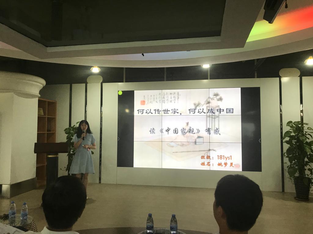 书评大赛在热烈的掌声中拉开序幕,每位选手以PPT配合演讲的形式对《中国家规》这本书进行解读、评论,从探求创作的思想性、学术性、知识性和艺术性进行阐述,力求为在场的观众们带来一场丰富的文化盛宴。比赛中,作为全场唯一的中职选手,18运输1班的姚梦灵同学毫不怯场,她与大家分享了左宗棠的家风家训对国家、社会及其家族的影响;18运营2班的陈雪华则紧扣“由俭入奢易,由奢入俭难”这一条家训进行了深度分析,阐述了她独到的见解,把比赛推向了高潮。虽然选手们的表现形式各有不同,但每位选手都能紧扣主题发表观点,展示自己的风采。经过评委们认真评分,最终陈雪华获得一等奖,姚梦灵获得二等奖,陈添龙获得三等奖,杜巧龙、黄锐、邱琦蓉、张李斌、黄文达和苏辰哲获得优秀奖。