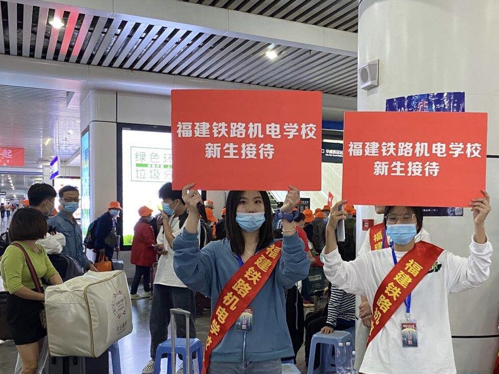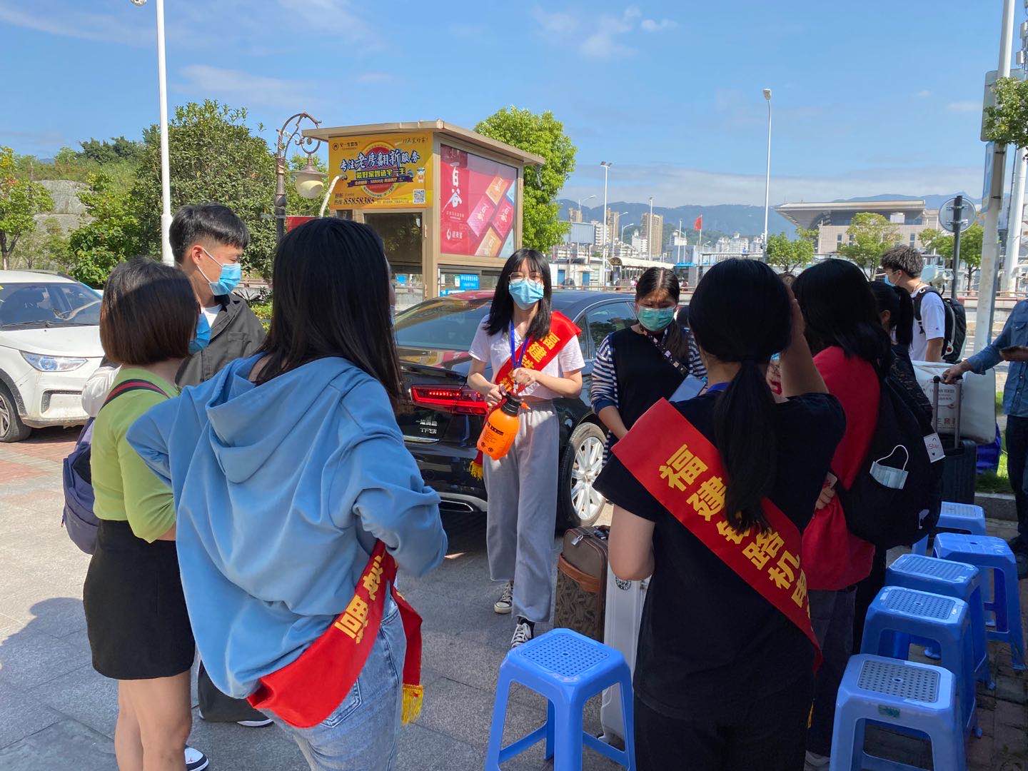在疫情防控常态化的大背景下,今年的迎新与往年不同。在福州火车站新生迎接点内,志愿者们为所有新生以及家长们进行了体温检测以及行李消杀,确保他们健康登上校园接送车。到达校园后,所有新生家长们在志愿者的引导下,在报到区外有序等候,在报到区内按照规划区域有序完成报到流程。