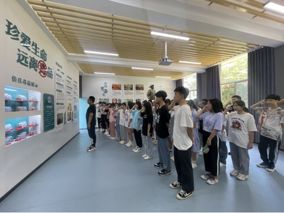 首先,保卫科组织21级新生分批到学校禁毒室参观,讲解员老师通过图片和典型案例相结合的形式向同学们讲解了禁毒知识以及毒品给社会、家庭、个人带来的巨大危害,让同学们更加深入了解了新型毒品的类型和危害性,使他们懂得“珍惜生命,远离毒品”,提高了大家拒绝毒品的心理防御能力和自觉性。其次,现场通过播放“生死下一秒”禁毒影片,为同学们讲述了一线缉毒公安民警为保百姓平安,出生入死与毒贩斗智斗勇,最终成功捍卫正义的动人故事。最后,学生共同宣读禁毒誓言,通过集体宣誓进一步提高同学们对毒品的认识和警惕性,营造校园禁毒的良好气氛。