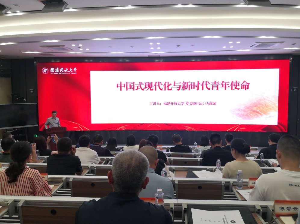 开班仪式上,马成斌为参训学员作了题为《中国式现代化与新时代青年使命》的专题讲座,结合习近平总书记关于实施乡村振兴战略的重要论述和“千万工程”经验,分析了新时代青年的担当和使命,希望学员们不断加强政治理论学习、全面提升乡村振兴战略、政策的理解能力和劳动实践能力,为乡村振兴贡献力量。现场学员还通过“网上马克思主义学院”参加线上理论专题学习,并通过手机进行了“千万工程”经验的专项理论答题考试。