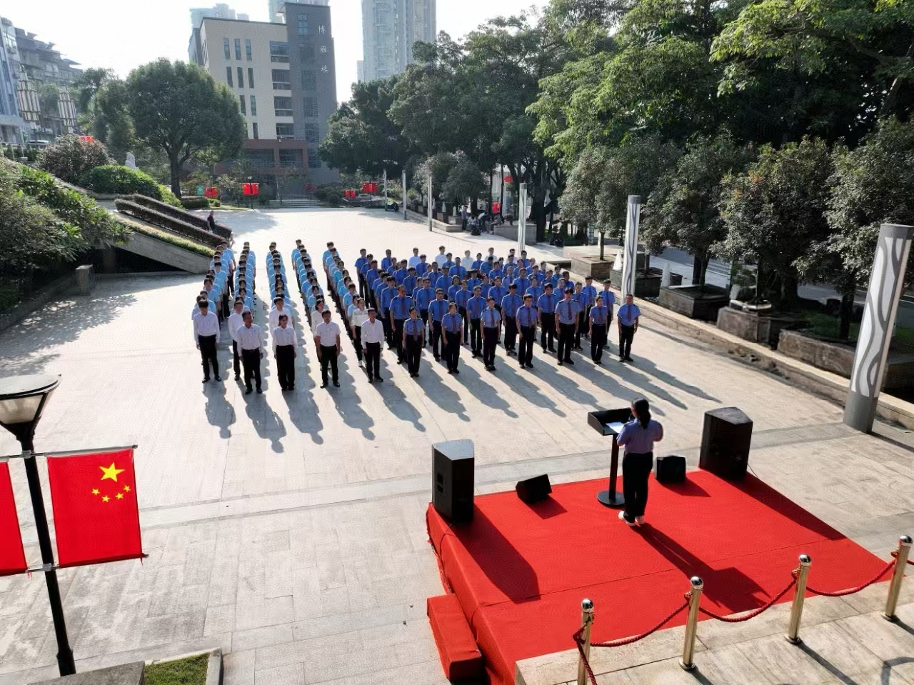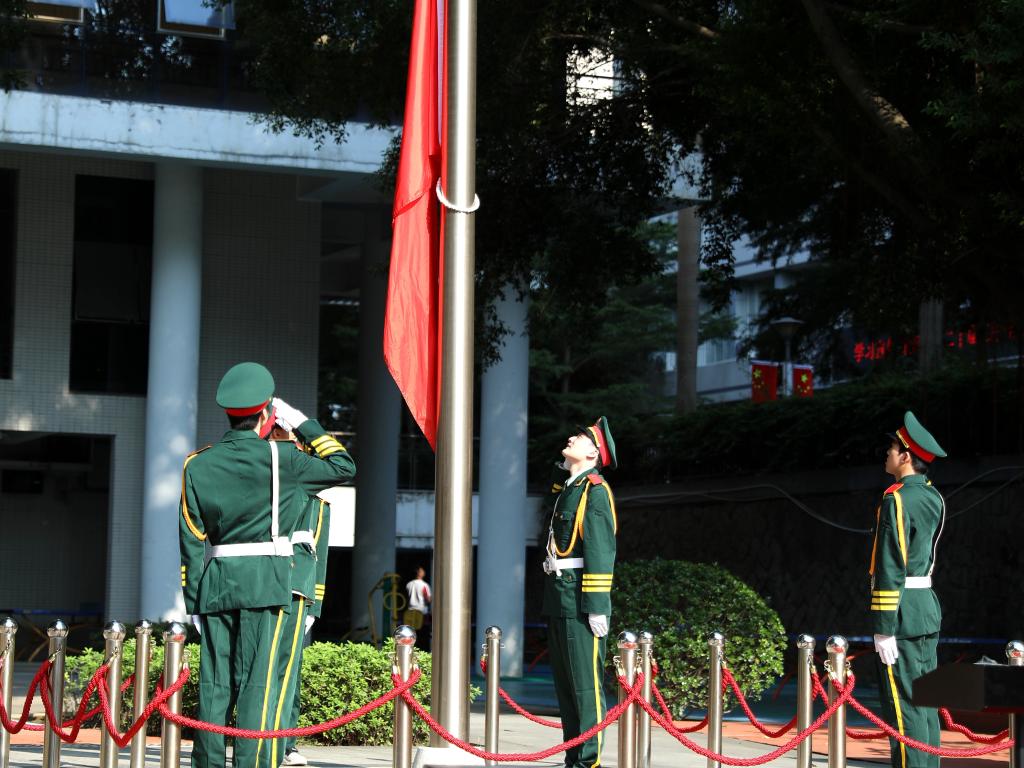 鲜艳的五星红旗在激昂的国歌声中缓缓升起,仿佛在诉说着75 年来的风雨历程与辉煌成就。参与仪式的团员青年们肃然而立,目光如炬,紧紧追随着那一抹鲜艳的红色,心中满溢着对祖国的深沉热爱与无尽自豪。
