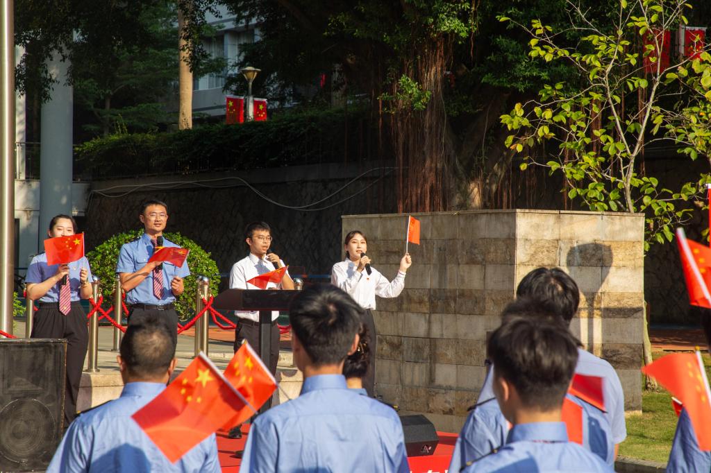 为深入学习贯彻习近平新时代中国特色社会主义思想,深化党的二十届三中全会精神,庆祝中华人民共和国成立75周年,进一步推动学校爱国主义教育工作走深走实,唱响礼赞新中国、奋进新时代的青春主旋律。10月11日下午,校团委、职业学院与南昌铁路局福州地区团组织共同开展 “与祖国同成长,与铁路共奋进--国旗下的演讲”主题团日活动,100余名团员青年参加了活动。