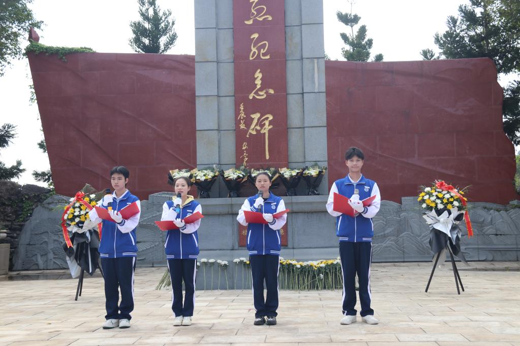 鲜花献英烈,哀思祭忠魂。活动在庄严肃穆的祭扫仪式中拉开序幕。全体人员整齐列队,向公安英烈纪念碑敬献花束和鲜花,默哀鞠躬,表达对英烈的深切缅怀。一束菊香,一份追忆,凝聚着对英烈牺牲精神的无限敬仰。少先队员和团员代表分别用真挚的情感和铿锵有力的语言朗诵了诗歌《中华少年》和《青春中国》,他们表达了对革命先烈的无尽敬仰,师生们深刻地感受到了公安英烈的崇高精神,更加明确了自己肩负的历史使命。