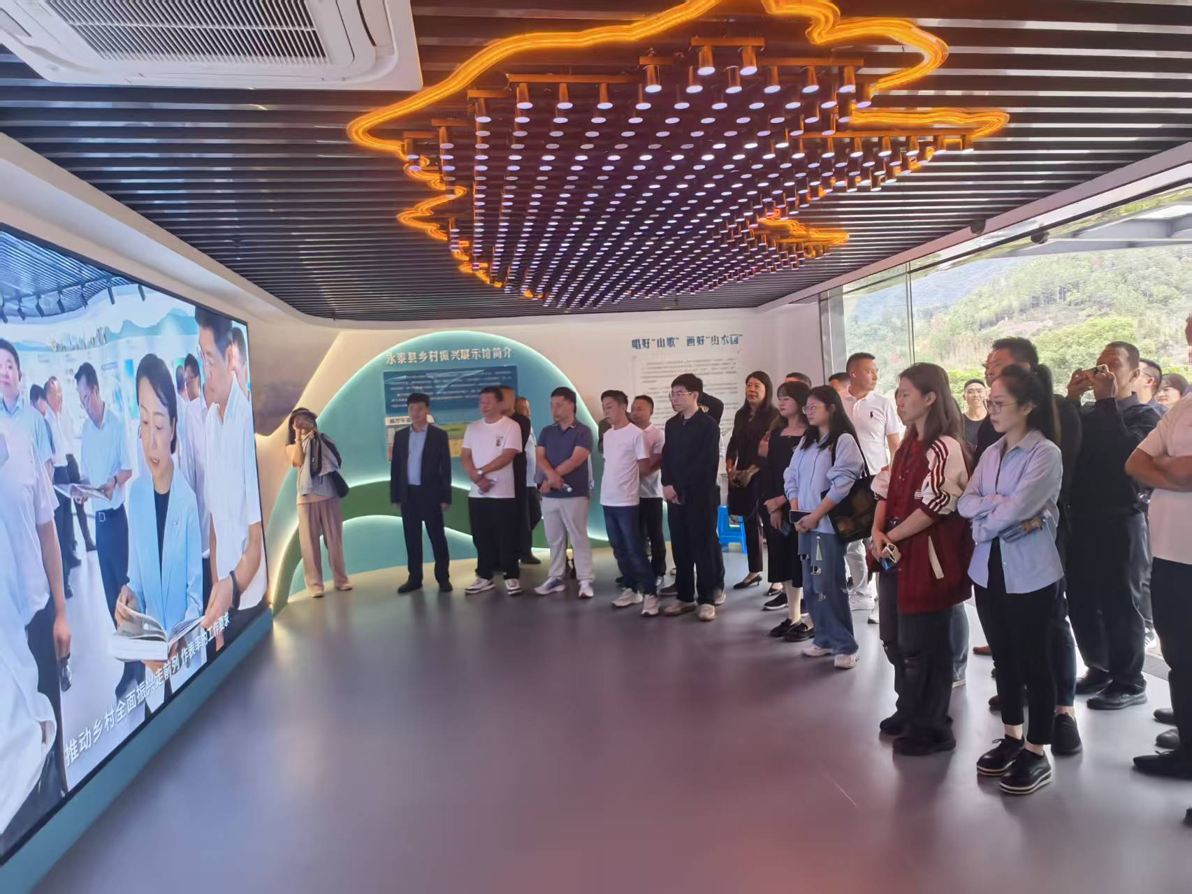 怀着对乡村振兴实践的向往,师生们首站抵达永泰县乡村振兴展示馆。在馆内,大家通过生动的图文和详实的资料,重温了习近平总书记来闽考察时的重要讲话精神,深刻领会其核心要义与实践要求。跟随讲解,同学们系统了解了永泰县在推动乡村产业、人才、文化、生态、组织振兴等方面的创新举措与丰硕成果。这一环节使抽象的“回信精神”与“乡村振兴战略”化为可触可感的现实图景,为同学们上了一堂鲜活的思想理论课。