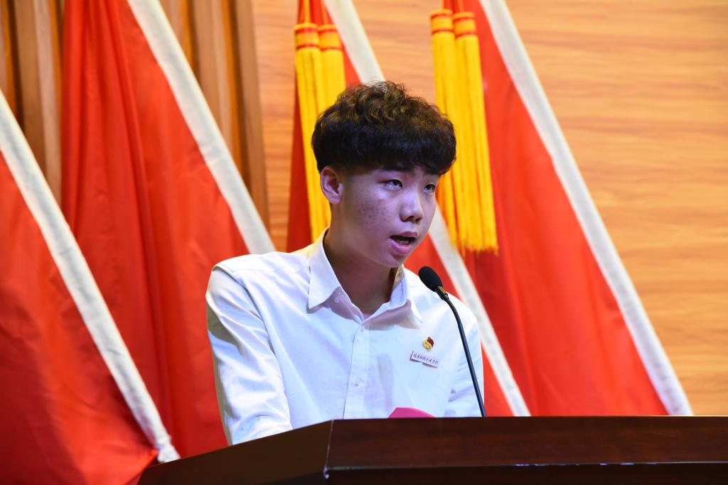 各位同学,让我们大家共同努力,通过现在的校园学习,通过自身的严格要求与不断付出,以团徽为荣耀,以团歌为号召,以团章为标杆,在平凡中见伟大,在积极中求理想。让我们在辛勤汗水中散发出耀人的光芒。携手共创和谐校园!